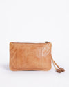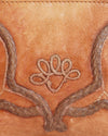 Genten’s signature artisanal touch, the Cerchi Leather Clutch Bag is a timeless piece that blends rustic charm with understated elegance. Made from high-quality tan leather, it features hand-tooled detailing and a unique scroll motif on the front, reflecting the brand’s dedication to craftsmanship.