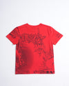 Givenchy Kids Printed T-shirt in a vibrant red. Crafted from premium cotton, the tee features intense black graphic prints including a striking scorpion, flames, and a leopard — blending streetwear energy with luxury fashion. The signature Givenchy logo is subtly placed at the chest, adding refined branding to this standout piece. A classic crew neckline and relaxed fit ensure all-day comfort while making a statement.