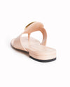 Gucci Blondie Interlocking G Logo Thong Sandals are rendered in a premium peach leather The design is defined by its modern squared-toe silhouette, providing a contemporary edge to the classic thong sandal structure. A standout feature is the oversized Interlocking G logo hardware in a polished gold-tone finish, prominently displayed on the leather vamp for immediate brand recognition.