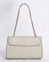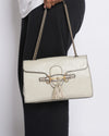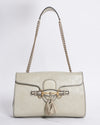 Sophisticated and feminine, the Gucci Guccissima Emily Shoulder Bag in white is a stunning expression of classic Italian craftsmanship. Made from embossed Guccissima leather, this structured bag features gold-tone hardware, a signature chain on strap, and the iconic leather tassel and horsebit detail. Its elegant silhouette and soft white hue make it a versatile choice for both day and evening wear, embodying timeless style with a modern touch.