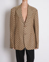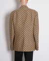 This Gucci Linen Blend Canvas Formal Jacket is a timeless piece that exudes sophistication and luxury. Crafted from a high-quality linen blend, the jacket features the iconic all-over GG monogram pattern in a classic brown colorway. Designed with a structured silhouette, sharp lapels, and a two-button front closure, it offers a tailored yet relaxed fit perfect for both formal and elevated casual wear. Finished with subtle welt pockets and buttoned cuffs, this jacket is a statement addition to any fashion-forward wardrobe.