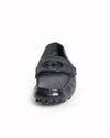 Gucci Men’s GG Supreme Driving Loafers are rendered in a premium combination of smooth black leather and tonal GG Supreme canvas. . A standout feature is the bold interlocking Double G logo prominently embossed on the leather saddle strap, serving as a sophisticated hallmark of the Maison's heritage. Finished with a vibrant cognac-colored leather lining and traditional apron stitching.