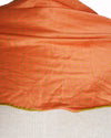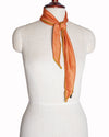 Gucci Scarf is meticulously crafted from premium orange silk chiffon, offering a semi-sheer, lightweight feel and an exceptionally soft drape. The design is defined by its versatile triangular silhouette, making it perfect for use as a necktie, headwrap, or elegant handbag accessory. Adding a subtle layer of detail, the fabric features a fine, tonal micro-pattern throughout and is finished with high-quality rolled edges in a contrasting olive green.