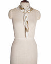 Gucci, this printed silk scarf is a sophisticated accessory that reflects the house’s iconic heritage. Crafted in luxurious silk, the scarf features an equestrian-inspired print adorned with intricate chain, tassel, and buckle motifs in warm beige and gold tones. Elegant and timeless, it adds a refined touch to both contemporary and classic ensembles.