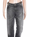 Gucci Straight-Fit Women's Denim Jeans are rendered in a premium dark-wash denim. . A standout feature is the integrated leather belt detail at the waistband, which is anchored by polished gold-tone hardware, providing a built-in luxury accent. Finished with tonal stitching, a classic five-pocket construction, and a branded metal button closure.