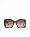 Gucci Sunglasses offer a dramatic and timeless look, synonymous with the brand's sophisticated aesthetic. The oversized square frames are crafted from glossy Tortoiseshell acetate, blending classic shades of brown and amber. The lenses are a complementary dark brown gradient, providing essential UV protection.