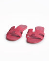 Hermès Oran Sandals in Pink. These timeless and popular slip-on flats are crafted from a vibrant pink leather, featuring the brand's signature H-cutout strap.