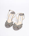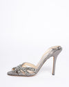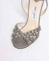 Jimmy Choo Metallic Grey Suede Joni Crystal Embellished Ankle Strap Heels