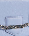 This Jimmy Choo crossbody bag is crafted from grained leather with a subtle metallic finish and accented with sleek silver-tone hardware. The compact yet functional design features dual compartments, including one secure zip compartment, along with a magnetic snap closure on the front flap for easy access. Elegant and versatile, this bag is perfect for both day and evening use.