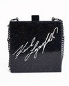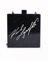 Karl Lagerfeld for Cover Story black medium clutch features a sleek, box-shaped acrylic body with a striking glitter finish and Karl’s signature in bold silver script across the front. Designed with a long silver-tone chain strap for easy shoulder or crossbody wear, it adds an instant touch of glamour to any outfit. The structured silhouette and secure top clasp make it perfect for evenings, parties, and special occasions.