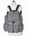 Kate Spade Backpack is a fun and functional accessory for daily errands or casual travel. Crafted from durable nylon, it features a striking, bold Black and White Horizontal Stripe print. The design includes a secure drawstring and top flap closure, exterior pockets for organization, and comfortable adjustable shoulder straps.