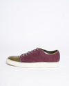 These Lanvin purple trainers feature a striking mix of purple and olive green tones, combining luxurious suede with glossy patent leather for a bold yet refined look. The contrast of textures adds depth and style, while the low-top silhouette ensures comfort and versatility.