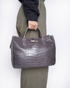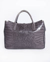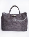 Longchamp Grey Crocodile Embossed Leather Roseau Tote