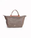 Longchamp Le Pliage Large Tote Bag is a world-renowned icon of French functional luxury, prized for its ingenious foldable design and durable construction. This piece is rendered in a versatile olive green nylon. The design is defined by its sophisticated contrast trim, featuring brown textured Russian leather handles and a matching signature snap-button flap. Designed for ultimate portability, the bag can be folded into the size of a paperback book when not in use.