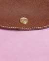 Longchamp Le Pliage Shoulder Tote Bag in a cheerful Pink nylon. Renowned for its durable, lightweight, and ingenious foldable design, this bag is perfect for everyday use or travel. The nylon canvas body is complemented by signature Brown Cuir de Russie (Russian Leather) trim on the top flap and shoulder straps. It features a secure top zipper closure and a snap button flap.