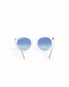 Louis Vuitton Aura Pantos Sunglasses is rendered in premium high-density acetate in a sophisticated crystal clear finish. The design is defined by its contemporary pantos silhouette, featuring a sophisticated rounded frame with a slightly flattened top. A standout feature is the subtle Louis Vuitton iconography, including the signature LV initials integrated into the hinges a definitive mark of archival luxury that captures the light with brilliant luster. Finished with premium gradient blue lenses.