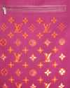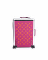 Louis Vuitton Horizon 55 Rolling Luggage in Monogram Jacquard Knit, this iconic carry-on is meticulously crafted from premium 3D thermoformed jacquard knit. The design is anchored by its vibrant Fuschia-pink body and statuesque neon orange Monogram motif. Featuring a revolutionary wide external cane handle.