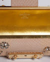 The Louis Vuitton Python Trésor Minaudière Clutch is a luxurious and rare accessory that epitomizes elegance and craftsmanship. Crafted from exotic natural python leather, this clutch showcases a sleek, elongated silhouette adorned with gold-tone hardware. The interior features a lustrous gold leather lining with a small patch pocket, offering both style and functionality