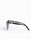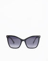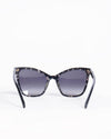 Love Moschino Cat Eye Sunglasses capture a playful, sophisticated style. The wide frames are crafted from glossy Black Acetate and feature a flattering, slightly exaggerated cat-eye silhouette. The temples are often adorned with subtle details, appearing here to be small heart accents near the hinge. The dark gradient lenses provide essential UV protection.