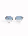 Love Moschino Round Frame Sunglasses are rendered with ultra-fine gold-tone metallic frames. The design is defined by its unique geometric take on the classic round silhouette, featuring a subtle cat-eye pull at the upper corners and a straight brow bar for an architectural look. A standout feature is the high-contrast dark-tinted lenses, providing both style and functional sun protection.