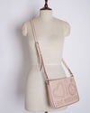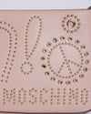 Love Moschino crossbody bag in a soft blush pink hue. Crafted from high-quality faux leather, the front features bold studded embellishments forming a heart, exclamation mark, and the brand’s signature logo. A slim adjustable strap ensures comfort for hands-free styling, while the structured silhouette offers just enough space for your everyday essentials.