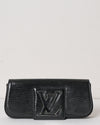 Luxury preloved well crafted and overflowing with style, this Sobe clutch is from Louis Vuitton. It has a patent leather exterior, a fabric interior, and a large LV adorned on the flap. This creation will lift all your gowns and elegant outfits.with silver tone hardware.