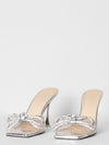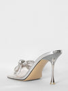 The preloved heels are silver tone & has an oversized double bow detailing with rhinestone &