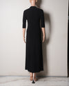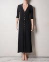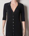 Made from ribbed knit, this black dress has a long, close-fitting cut and is finished with small gold signature buttons engraved with clovers. With a v-neck and short sleeves, it has a small slit at the front to discreetly reveal a little more leg.