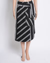 This chic Maje skirt features a striking black and white striped pattern with an asymmetric hemline for a contemporary edge. Crafted from premium fabric, it drapes elegantly, offering both comfort and style. Perfect for both casual and semi-formal looks, this skirt pairs effortlessly with a sleek blouse or a fitted top for a sophisticated ensemble.