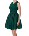 Preloved Maje green and black round-neck, fit and flare dress with zip closure at the back.