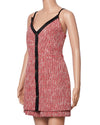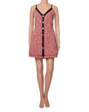 This stylish jumpsuit, crafted from a comfortable knit fabric, features a distinctive design with bold red and white stripes that run vertically, creating a striking and dynamic look. Sleeveless and perfect for warm weather, it offers a sleek silhouette with a modern touch. The jumpsuit includes a button-up front, adding a touch of sophistication and versatility to the design. A unique black strip running down the side adds a contemporary flair, making it a standout piece for both casual and dressy occasions.