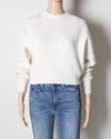 The preloved white Maje sweater has a high neck and cropped hem.