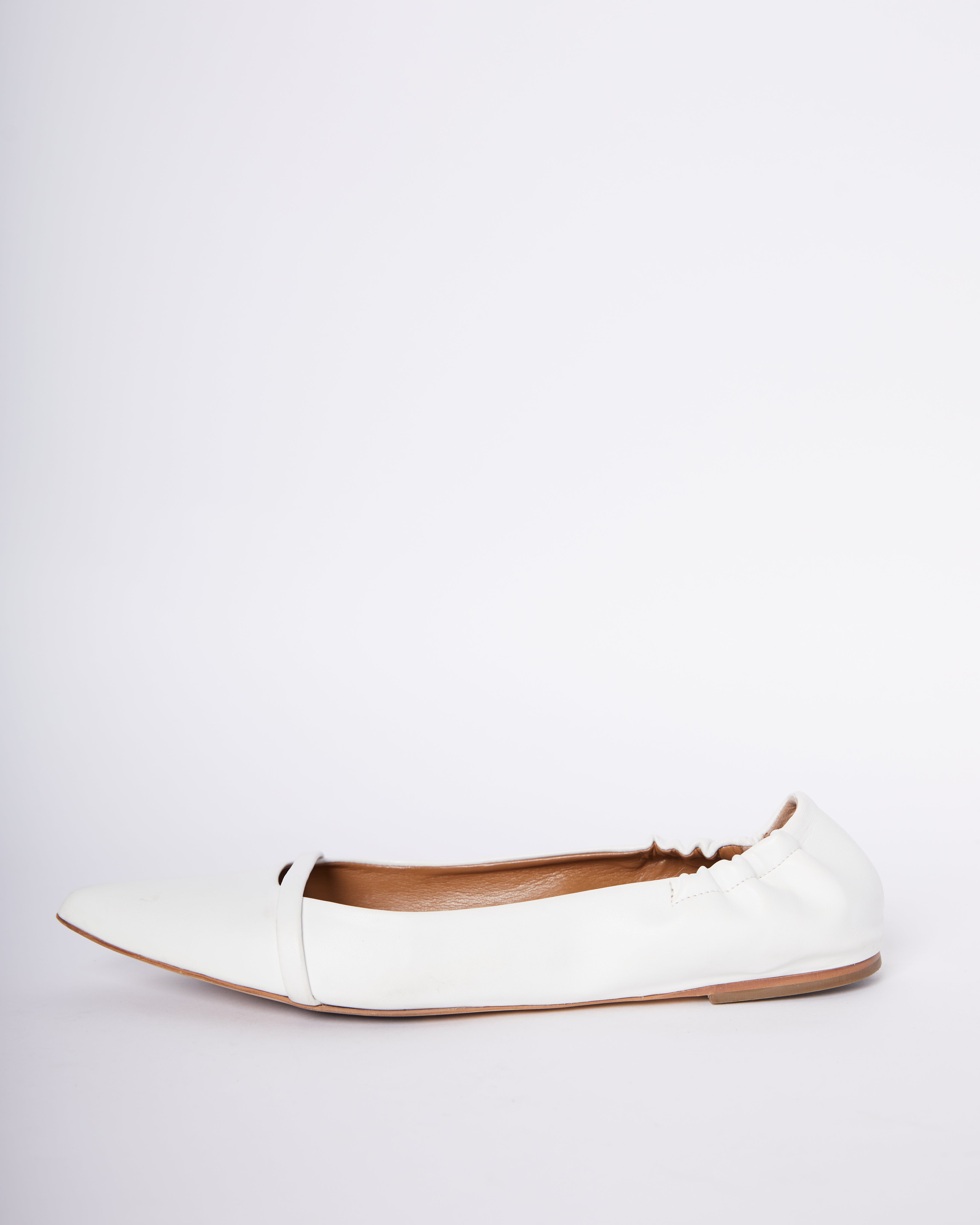 The Malone White Pointy Ballerina Flats are a chic and elegant choice for any wardrobe. Featuring a sleek pointy toe design, these flats are complemented by an elasticized back for a comfortable fit. Perfect for both casual and dressy occasions, they effortlessly blend style and comfort. A versatile addition to your shoe collection!