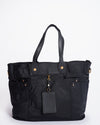 Marc Jacobs Preppy Nylon Elizababy Bag. This versatile tote is crafted from durable, lightweight black nylon, offering a functional yet chic design. It features multiple exterior pockets for easy access, comfortable leather top handles, and sleek gold-tone hardware. The spacious interior is perfect for organizing everything from baby essentials to work items.