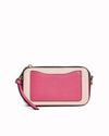 Marc Jacobs Snapshot Camera Bag is a runway-inspired icon that perfectly balances modern edge with everyday utility. This specific iteration features a striking tricolor palette, with a soft rose pink front panel, a bold burgundy side, and a refined gold-tone leather top. Crafted from durable Saffiano-effect leather with a polyurethane coating, the bag is designed to maintain its structured shape and resist daily wear. The front is detailed with the signature Double "J" hardware in polished gold-tone, a hallmark of the Snapshot line.