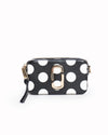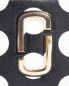 Marc Jacobs Snapshot Polka Dot Crossbody Bag is a playful and high-contrast iteration of the brand’s most iconic silhouette. This compact camera bag is rendered in a black and white polka dot pattern, offering a bold, retro-inspired aesthetic that effortlessly stands out. The design is defined by its signature dual top-zip compartments and the prominent gold-tone "Double J" hardware on the front.