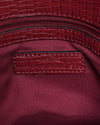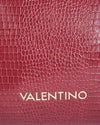 Mario Valentino Maroon Croc-Embossed Satchel is rendered in premium leather in a deep maroon hue. A standout feature is the detachable wide webbing shoulder strap, which features the bold "VALENTINO" logo in high-contrast white lettering, instantly transforming the bag from a lady-like top handle to a trendy crossbody. Finished with polished gold-tone hardware and a secure top-zip closure.