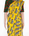 Masaba Yellow Crepe Saree is a bold and vibrant statement piece that captures the designer’s playful yet contemporary aesthetic. Crafted from a fluid, lightweight crepe, the saree features a distinctive repeating cow motif in black and white, set against a striking yellow backdrop. The contrast of the whimsical print with the bright base creates a unique and eye-catching look. This saree beautifully blends traditional Indian draping with modern, artistic expression.