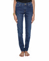 Massimo Dutti Dark Wash Skinny Jeans is rendered in premium stretch-cotton denim in a sophisticated deep indigo wash. The design is defined by its contemporary skinny silhouette, featuring a sophisticated mid-rise frame. A standout feature is the architectural gold-tone hardware and signature contrast topstitching.