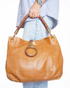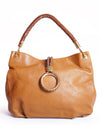 Michael Kors tote bag is a stylish and versatile accessory. The bag is crafted from a soft, slouchy brown leather and features a relaxed, hobo-style silhouette. The standout details are the dual, elegant braided leather handles, which are finished with polished gold-tone hardware.