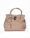 Preloved designer MK bag comes up with silver tone hardware and magnetic press button closure with lock in front of the bag. It also features to top handle with spacious inner detailing.