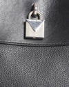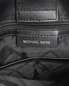 Michael Kors Large Satchel in Black is rendered in premium black pebbled leather. A standout feature is the silver-tone logo-engraved padlock on the front, which adds a touch of hardware-driven elegance and serves as a definitive Michael Kors signature. Finished with sturdy rolled top handles and a coordinating leather clochette.