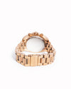 Michael Kors Women's Chronograph Watch is a bold and functional timepiece that combines sporty utility with high-fashion luxury. This watch is rendered in a radiant rose gold-tone stainless steel finish, featuring a classic three-link bracelet that offers a polished and substantial presence on the wrist.