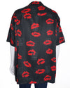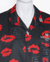 Mihara Yasuhiro shirt is a bold and avant-garde piece from the Japanese designer known for his deconstructed and experimental designs. The black button-down shirt is a canvas for a striking, all-over red lip print, a bold and graphic motif. The shirt is further detailed with various white text and label-like prints, adding to a fragmented, collage-like aesthetic. With a relaxed, oversized fit and a classic open collar, this unisex shirt is a perfect blend of high-fashion and rebellious streetwear.