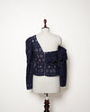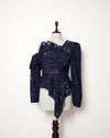 Self Portrait Navy Blue Cutwork Lace One Shoulder Top