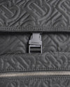 Burberry Monogram Backpack in Quilted Nylon is rendered in premium black nylon, featuring an all-over intricate quilted pattern of the TB (Thomas Burberry) Monogram. A standout feature is the functional front-zip pocket, adorned with a polished silver-tone zipper and a matching leather pull tab, offering convenient storage for small essentials. Finished with a secure buckle-fastening front flap and adjustable shoulder straps,