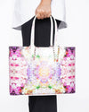 Christian Louboutin Damen Tote Cabata is a playful and vibrant accessory. Crafted from a durable leather material, this tote features a stunning, all-over floral print in a kaleidoscopic array of pink, purple, green, and white hues. The large open-top silhouette is perfect for a beach day, shopping, or a stylish summer outing. The bag comes with a matching zip pouch, making it a functional set for organizing your essentials.