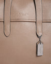Coach Sullivan Portfolio Brief Handbag is rendered in premium pebbled leather in a versatile beige hue. A standout feature is the discreetly embossed Coach logo on the front flap, providing a subtle yet definitive mark of quality and heritage. Finished with sturdy dual top handles and a matching metallic hangtag.