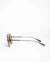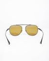 Dita Sunglasses feature a sophisticated angular navigator frame. The frame is meticulously constructed from lightweight titanium in a sleek matte black iron finish, featuring a prominent flat-top brow bar with subtle diamond-pressed detailing. The lenses are a high-contrast yellowish-brown tint, designed to provide exceptional clarity and a vintage-inspired aesthetic. The ultra-slim titanium temples are finished with Dita’s signature spear-tip design for a secure and comfortable fit.