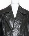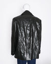 New Kanika Goyal Label textured jacket is a quintessential piece from the brand known for its "provocative minimalism" and blending of paradoxes. Crafted from a unique textured fabric, this unisex jacket features a relaxed, oversized silhouette with a wide, notched collar. The sleek black color and the subtle, tactile finish of the material create a sense of understated luxury and modern edge. The jacket has a single button closure and a dropped shoulder design, making it a versatile layering piece that adds a touch of avant-garde cool to any ensemble.